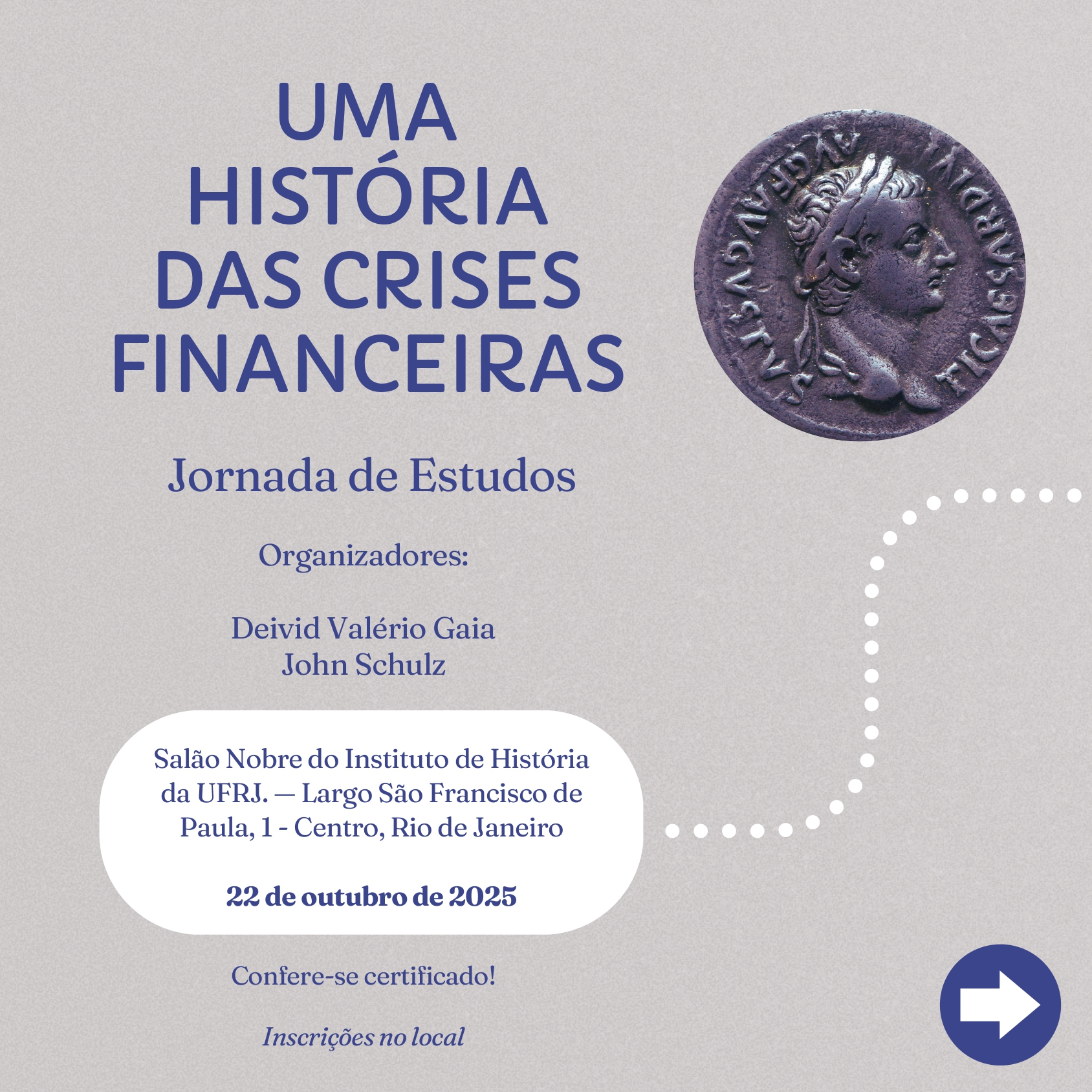 No dia 22 de outubro de 2025, será realizada a Jornada de Estudos "Uma história das crises financeiras", organizada por Deivid Valério Gaia e John Sch...